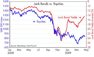 B: Since the economy no longer looks to be in freefall, default rates are likely to be much lower than the market earlier feared, but the outlook for profits remains dismal, due to fears of higher tax burdens, increased government regulation, cap and trade, nationalization, etc.